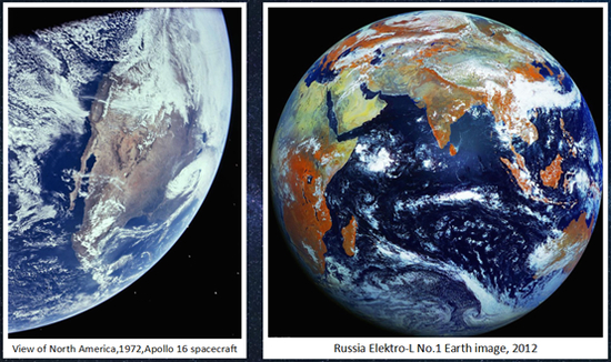 右:2012年俄罗斯卫星拍摄的地球照片