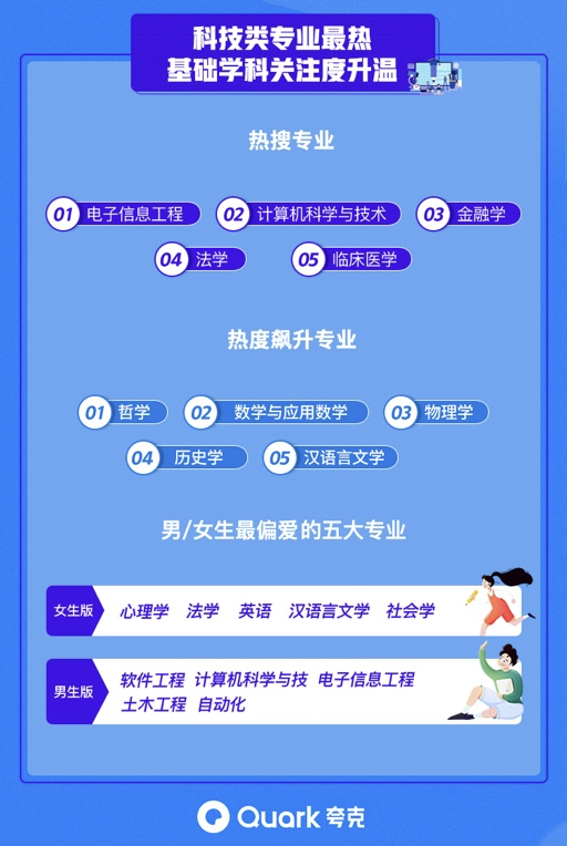 同时,夸克数据显示,青岛大学、江南大学、扬州大学等位于宜居城市的宝藏大学,凭特色的优势专业,关注度快速上升。生活相对舒适的非一线城市成为今年填报志愿的新趋势。