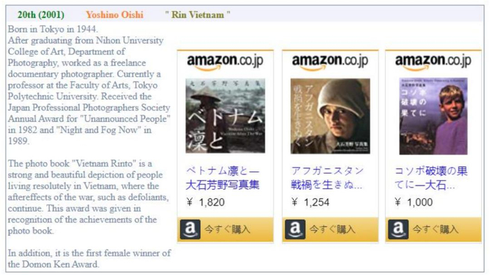 2006年在东京都摄影博物馆展出了海外摄影家奖20 年的获奖作品。
