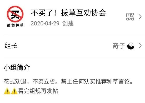 当然,有相同困扰的人也不少,前两天我在逛豆瓣时就发现了一些反消费主义小组,对于我这种爱剁手的人真的非常实用,希望也能给大家一点启发。 不买了!拔草互劝协会。出场的一号选手从名字到组规都表明了态度:花式劝退,不买立省。