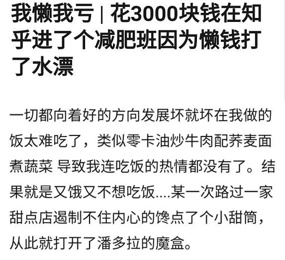 花3000块报了减肥班,一顿操作后卓有成效。都怪甜品店的冰激凌太好吃了,花出去的钱就这样打了水漂。