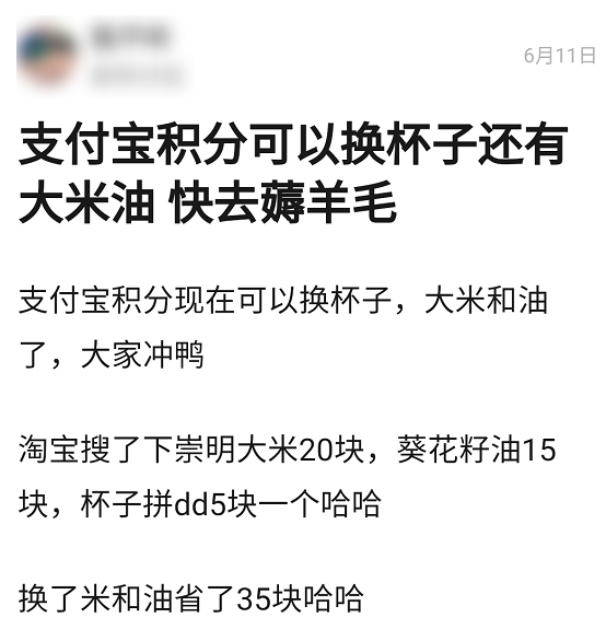 支付宝积分也能换米面油,这下又省了一笔钱。