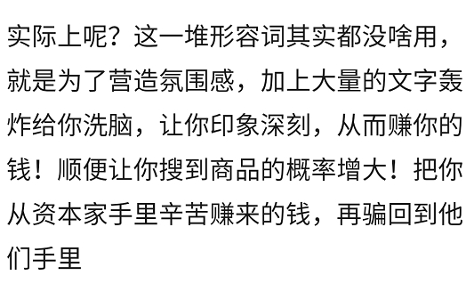 妹子精辟总结:不要为描述商品的形容词花钱,除了营造氛围抬高售价,大多数没啥卵用。