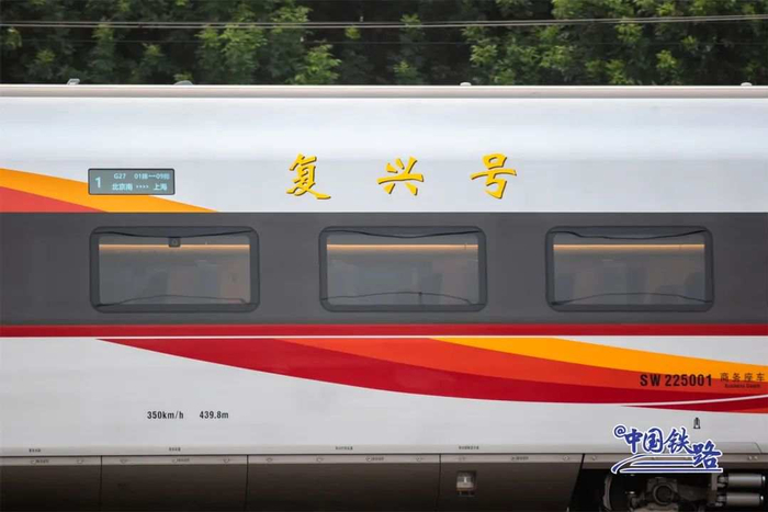 两款车型的“复兴号”标识字体为金色,车身两侧红黄相间的花纹犹如一根彩绘飘带,鲜艳夺目、动感十足。