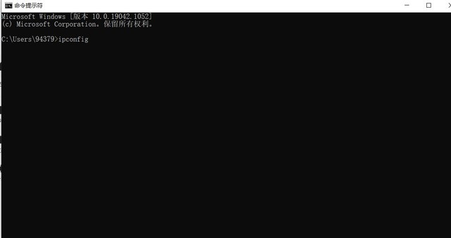 在弹出的终端里输入“ ipconfig ” 后回车。