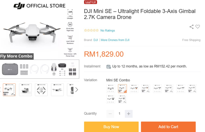 IT之家了解到,大疆 DJI Mini SE 目前仅在马来西亚大疆官方商城开售,目前有现货。产品预计将于本月登陆其它国家和地区。