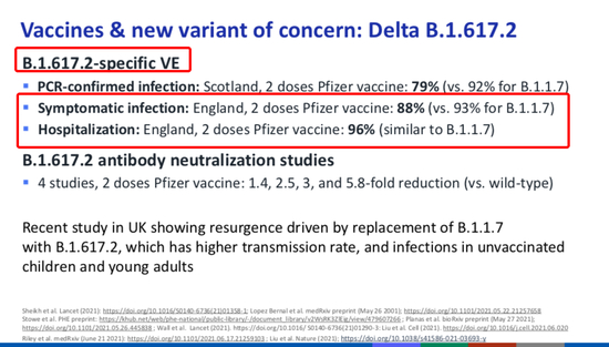 尤其是新冠病毒 Delta 变异株在许多国家开始爆发之际。Delta 株可能导致几乎所有的新冠疫苗有效率都下跌,无非下跌多少的问题,即便是 mRNA 疫苗,仍然出现了一些突破性感染的报道。