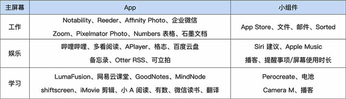 工作主屏幕里,有用于同事沟通联系的企业微信、Zoom,有做会议记录的 Notability,还有作图的 Affinity Photo 和 Pixelmator Photo、搜集资料的 RSS 阅读器 Reeder,基本满足了我日常移动办公需求。