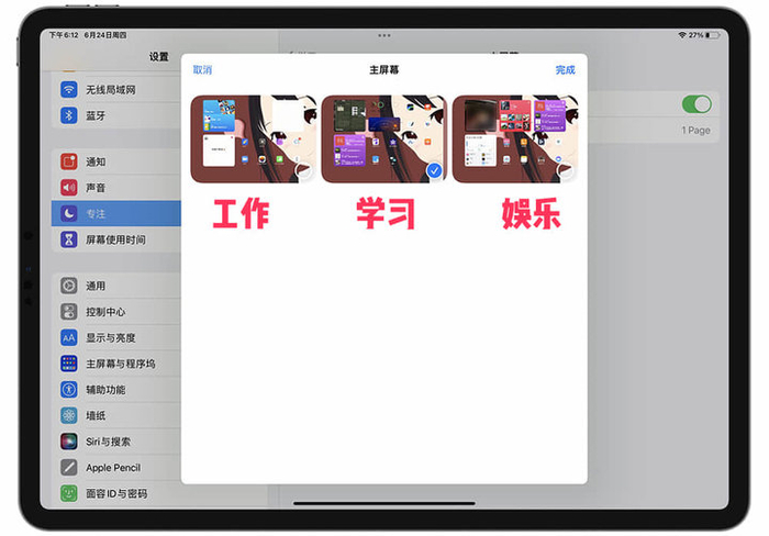 专注模式设置:一键切换的 iPad 空间