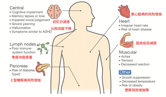 其实,熬夜带来的睡眠不足,对身体的影响也不容忽视。(说明:本文的熬夜不是单指睡觉时间晚,而是表示‘睡眠不足’)