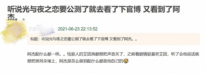 腾讯出品的乙女游戏《光与夜之恋》推出后,除了剧中几个可攻略男主的人设引起了争议外,一部分玩家的“炮火”则对准了配音演员。为男主之一的萧逸配音的阿杰,收获了最多的吐槽。有不少玩家认为阿杰的配音大同小异,“太有个人特色”,容易让人“串戏”。
