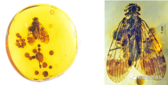 后来,我和另外一个老师合作发现了琥珀化石的昆虫新种,这个琥珀昆虫是白垩纪时期的一种蜡蝉,发现的昆虫新种全称命名为刘晔斑神蜡蝉。
