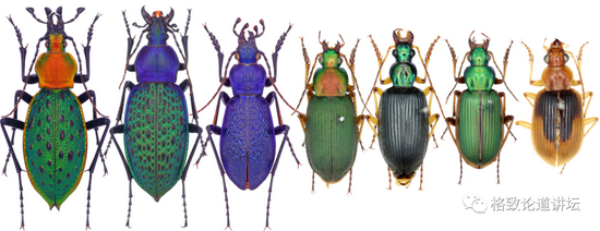 图片中第三只虫子是我研究的步甲,这种步甲是单独的一类,它有个外号叫做宝石步甲。