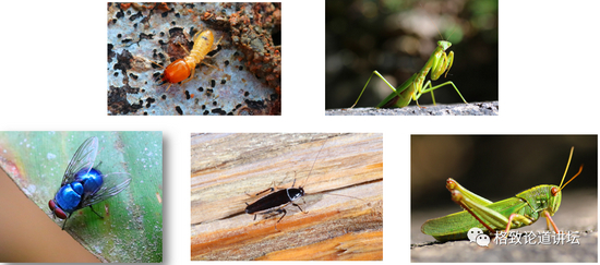 常见的昆虫:白蚁类、螳螂类、苍蝇、蟑螂、蝗虫