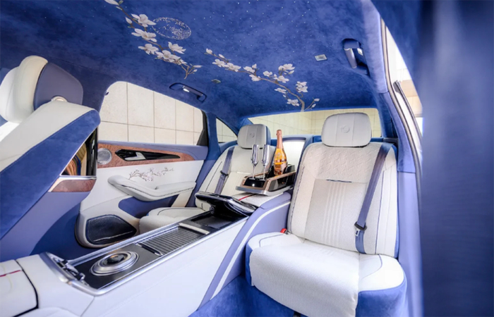 而白玉兰版则是使用了白蓝的双拼车漆,内饰为蓝白搭配的主色调,在中控台以及车门内饰板等位置使用了木纹饰板。车顶棚位置使用了和外观呼应的蓝色装饰,并且带有刺绣工艺的白玉兰花图案,十分雅致。