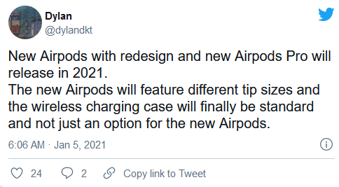 在一条新的推文中,@dylandkt还表示,AirPods 3将采用不同大小的耳塞硅胶尖,以便更自然地适合用户不同的耳型。在推出两代相同尺寸和设计的AirPods后,苹果终于开始提供类似AirPods Pro的选择,这一舒适性和密封性上的改进很可能会带来更多的客户群。