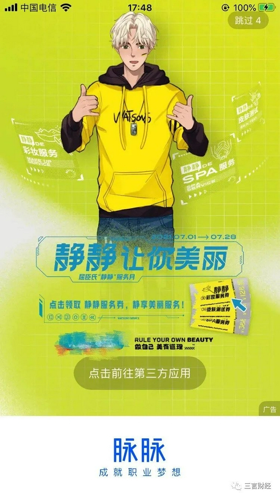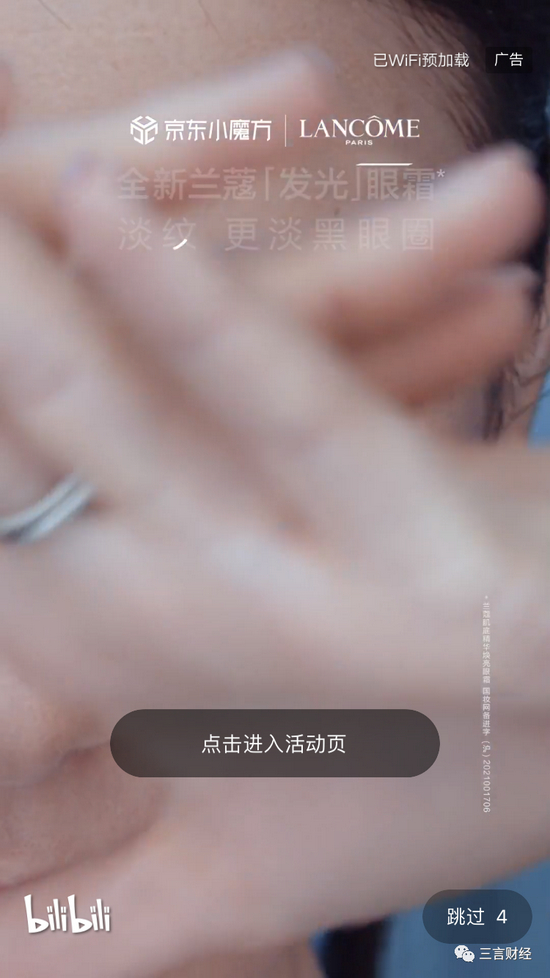 B站、知乎和脉脉也仍有开屏广告。进到主页面,B站和知乎6秒左右,脉脉5秒左右。(注:以上进入时间均是不点击“跳过”的情况下)