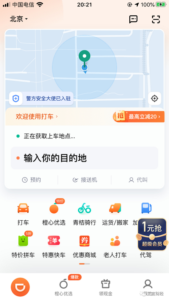 滴滴出行无开屏广告,秒进;曹操出行、滴答出行、嘀嗒出行均仍有开屏广告。进入主页面,曹操出行3秒左右,滴答和嘀嗒5秒左右。