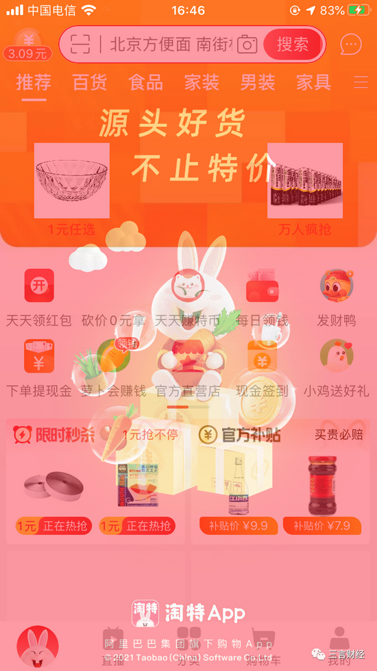 三言财经亲测,淘宝、支付宝、闲鱼、1688以及淘特确实都没了开屏广告。可以说是秒进,尤其是淘特,以小编的手速都没截到初始页面,只截到了初始画面到主页过渡的叠加效果页面。