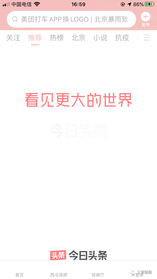 三言财经发现,今日头条并无开屏广告,秒进。