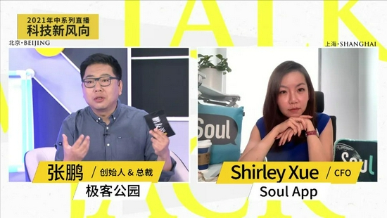 关于这些问题,在极客公园 2021 年中系列直播中,极客公园创始人 & 总裁张鹏和 Soul App CFO Shirley Xue 做了深入探讨。