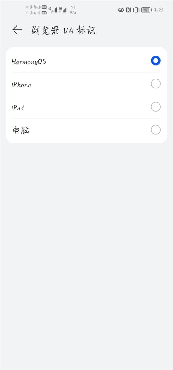 华为浏览器上的安卓UA标识被移除:鸿蒙OS取而代之