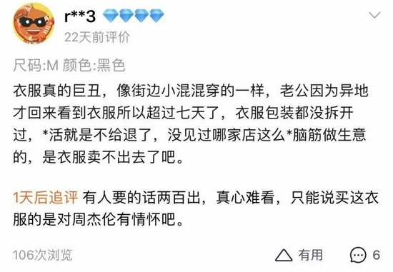 周杰伦可以轻松打破微博超话纪录、一出新歌就让QQ音乐服务器瘫痪,但他也无法拯救自家品牌Phantaci的惨淡销量。在其天猫店铺,销量最高的T恤月售仅30多件,商品评价中能看到不少吐槽。