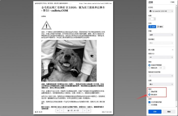 Firefox 打印预览页面中此前存在一个名为“简化页面”(Simplify Page)的格式选项,能够打印输出无杂乱的页面。不过在推进全新的打印 UI 的时候,Mozilla 移除了这个选项。而在最新的 Firefox 91 版本中,该选项又重新回归,只不过名字缩短为“简化版本”(Simplified)。