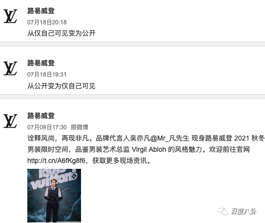 撇开新浪娱乐和新浪微博。直到昨天吴亦凡代言的LV等诸多大牌,还在力挺他。把涉及他的微博宣传,先改成自己可见,缓冲民愤,再改成公开可见,继续力撑吴亦凡。