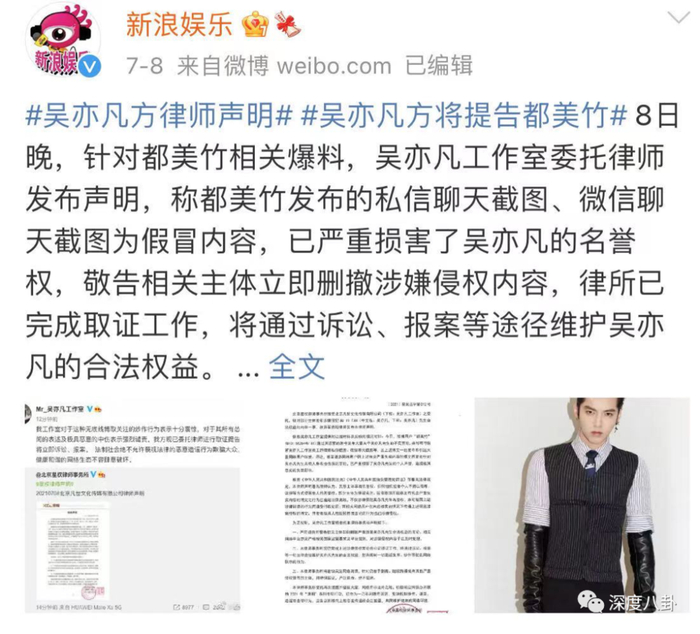 原标题:吴亦凡都美竹事件,我想说的话和强调的信息