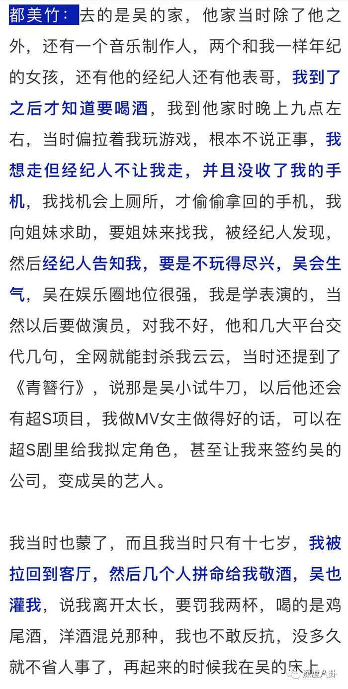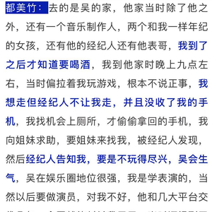 按照都美竹的说法,这疑似是一个持续多年,有组织的,祸害多名女生的犯罪行为啊!给年轻刚成年的女孩灌酒,利用权势、地位、财富的巨大差别,威胁恐吓她不要离开酒桌,趁她酒醉之后,发生性行为。