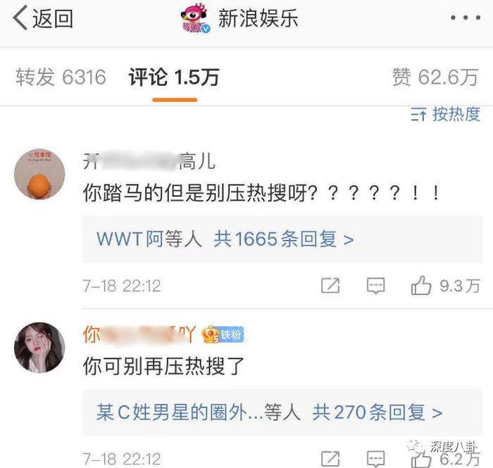 我不知道新浪方面出于什么样的考量,有没有利益输送,做出了这样的选择性传播行为。也不知道为什么都美竹锤吴亦凡等相关话题阅读量和讨论量如此之高,直到昨晚才能持续登上热搜。更不知道新浪微博们压热搜的行为存在不存在。