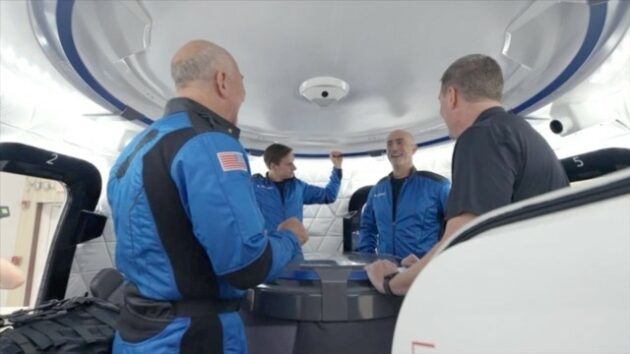在火箭呼啸冲破大气层时,爬升力和地球引力会把这四人牢牢地钉在座位上。发射后约三分钟,他们会突然感到失重。这时候,他们可以解开安全带,漂浮在太空舱内,从一个窗口飘到另一个窗口,一面的窗外是地球的优美弧线,另一面的窗外则是漆黑深邃的太空。他们将只有三分钟的时间,欣赏这番美景。