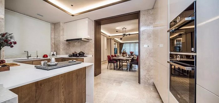 外立面方面,颐和源璟采用石材+铝板+玻璃幕墙的组合,超大窗墙比设计,保证采光及美观。
