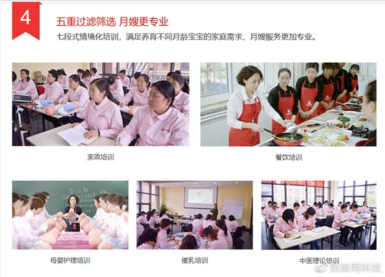 保姆和月嫂也是经过严格筛选、专业培训、考核的”在主要位置明确显示。