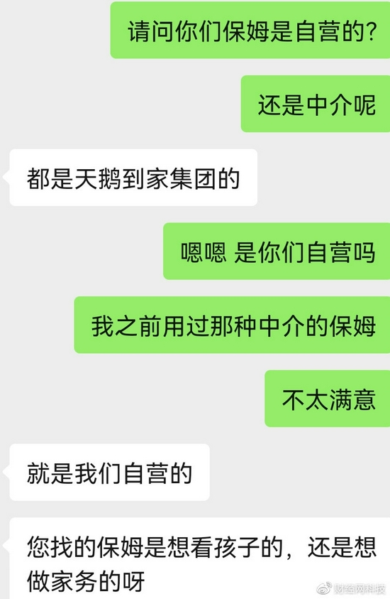 至发稿前,财经网科技通过咨询天鹅到家客服了解到,天鹅到家对外宣传词仍然与2017年李女士的描述接近一致。无论在咨询保姆还是月嫂服务,天鹅到家客服人员一律强调为“公司自营业务”。