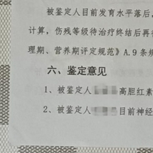 一个月后,孩子被医生诊断为高危儿,需要长期康复治疗,之后再做发育测评。最终司法鉴定报告表明:脑神经损伤,导致发育迟缓,系高胆红素血症导致。
