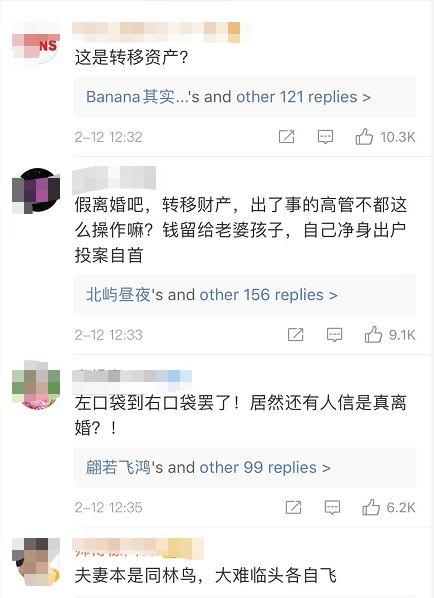 网友质疑:真分道扬镳,还是转移财产?