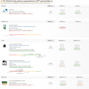 然后是 8C / 12T 的这款 Alder Lake-P 移动处理器,但从 1.0 GHz 的基础 / 睿频参数来看,UserBenchmark 很可能尚未更新到可准确识别 Alder Lake 混合架构芯片。