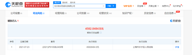 新浪科技讯 7月26日上午消息,天眼查App显示,近日,拼多多关联公司杭州微米网络科技有限公司新增被执行人信息,案号(2021)沪0105执3408号,执行标的45828484元,执行法院为上海市长宁区人民法院。关联案件为非凡互联(北京)传媒科技有限公司与杭州微米网络科技有限公司相关服务合同纠纷。