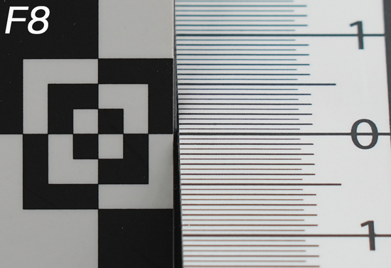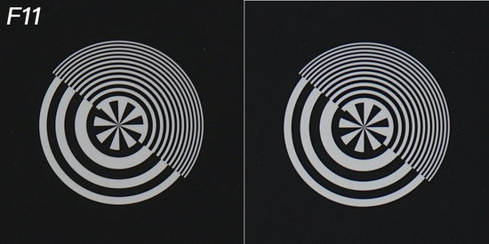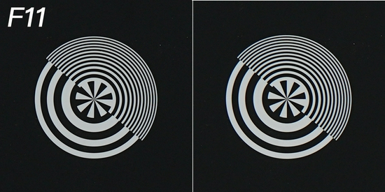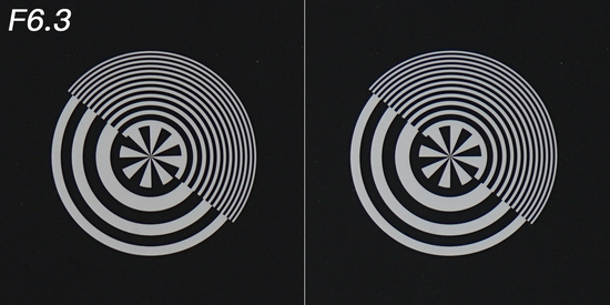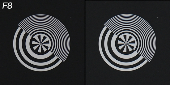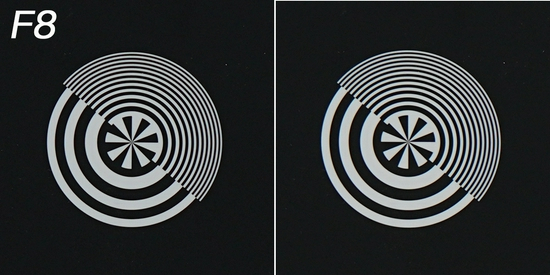 下图为150mm端,左图为中心,右图为边缘,下同。光圈全开时,从中心到边缘的分辨率表现就十分出色。