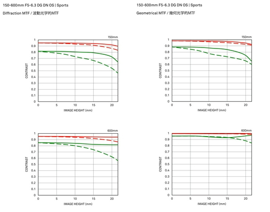 对于一支浮动光圈镜头,不同焦段的光圈变化同样值得关注。这款镜头全程光圈相差不到一挡,在150-173mm时光圈保持在F5,174-365mm时保持在F5.6,之后在366-600mm保持在F6.3,整体变化比较平均。