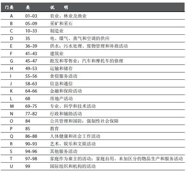 下图为《国际标准行业分类》中第二部分第一章总体结构中将单个类别归并,成为以下21个门类: