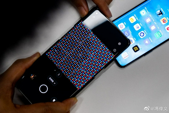 在当时看来,将前置摄像头藏在屏幕下得到的‘完美’全面屏并不完美,稍微侧一侧头就能看到摄像头区域有个纱窗般的方框。