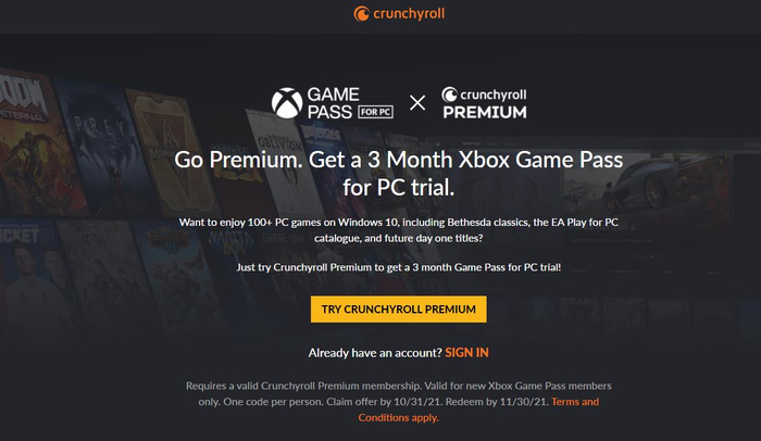 Crunchyroll会员免费领取PC版XGP会员 新用户可薅羊毛