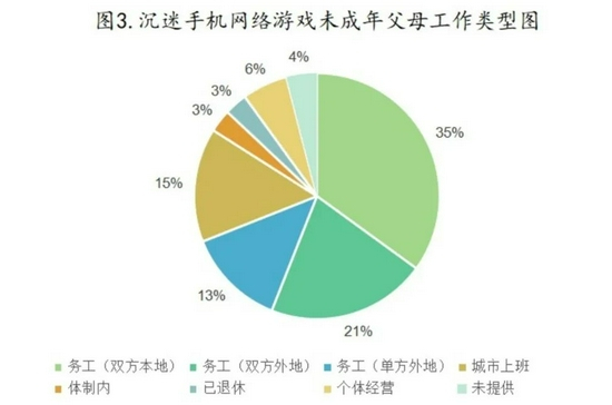 同时值得关注的是,大量外出务工人员没有能力和条件将自己的未成年子女带在身边,只能将孩子留在老家让老人照看。祖辈一代往往并不懂得如何在互联网时代下教育、引导孩子。为此面对孩子的哭闹,相比于苦口婆心且无效果的说教,他们会发现给孩子们一部手机往往是最“便捷高效”的方式。殊不知,这种行为无意中也为孩子沉迷手机网络游戏埋下了伏笔。