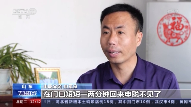 申聪父亲 申军良:其中有一次我妻子印象特别深刻,我妻子去一下卫生间,申聪在学步车上,在门口,短短一两分钟回来申聪不见了。我妻子楼上楼下跑着找申聪,都没找到。我妻子就有点着急,一喊,听到申聪在他们房间答应,我妻子推开他们门,“斜眼”在床上把申聪的鞋子都脱掉了,用被子包着申聪。