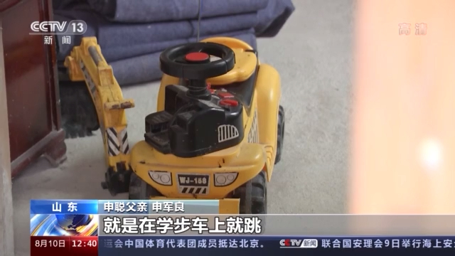 申聪父亲 申军良:那一段时间,申聪每一次,我下班之后,听到我的脚步声特别高兴,就是在学步车上就跳,你给他开DVD,听儿歌,节奏感特别强 。