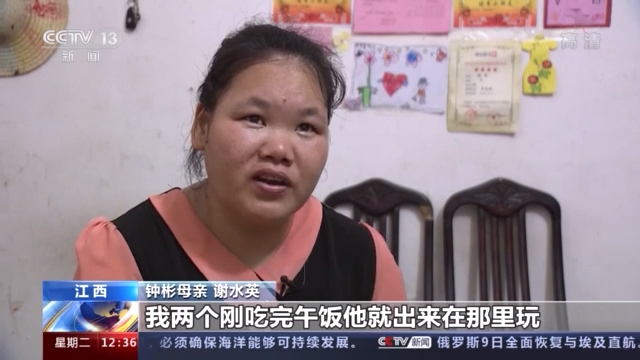 钟彬母亲 谢水英:我两个刚吃完午饭他就出来在那里玩,我看到他在那里玩,我说我洗两个碗。拐卖的那个人他也刚好在逗他,我刚好洗了一半的时候,我就听他说他带(钟彬)去买吃的,我转身就出来了,(孩子)就不见了。