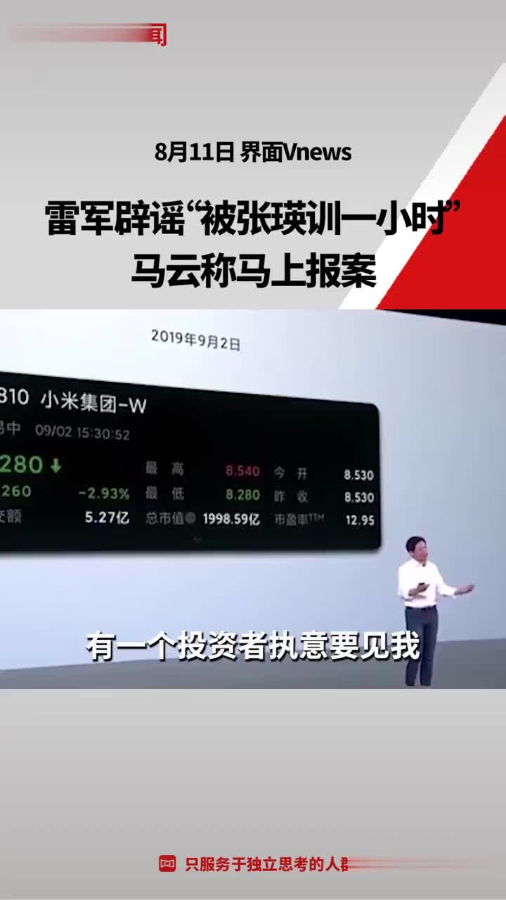 雷军辟谣“被张瑛训一小时”,马云称马上报案